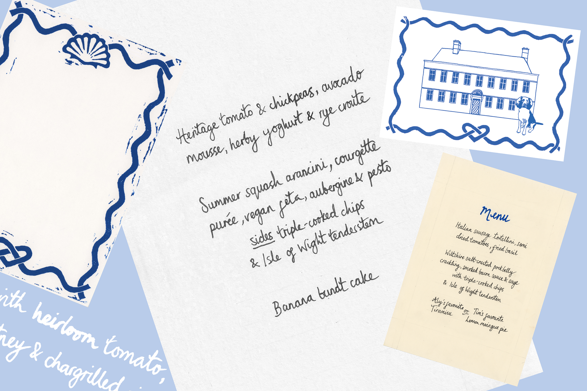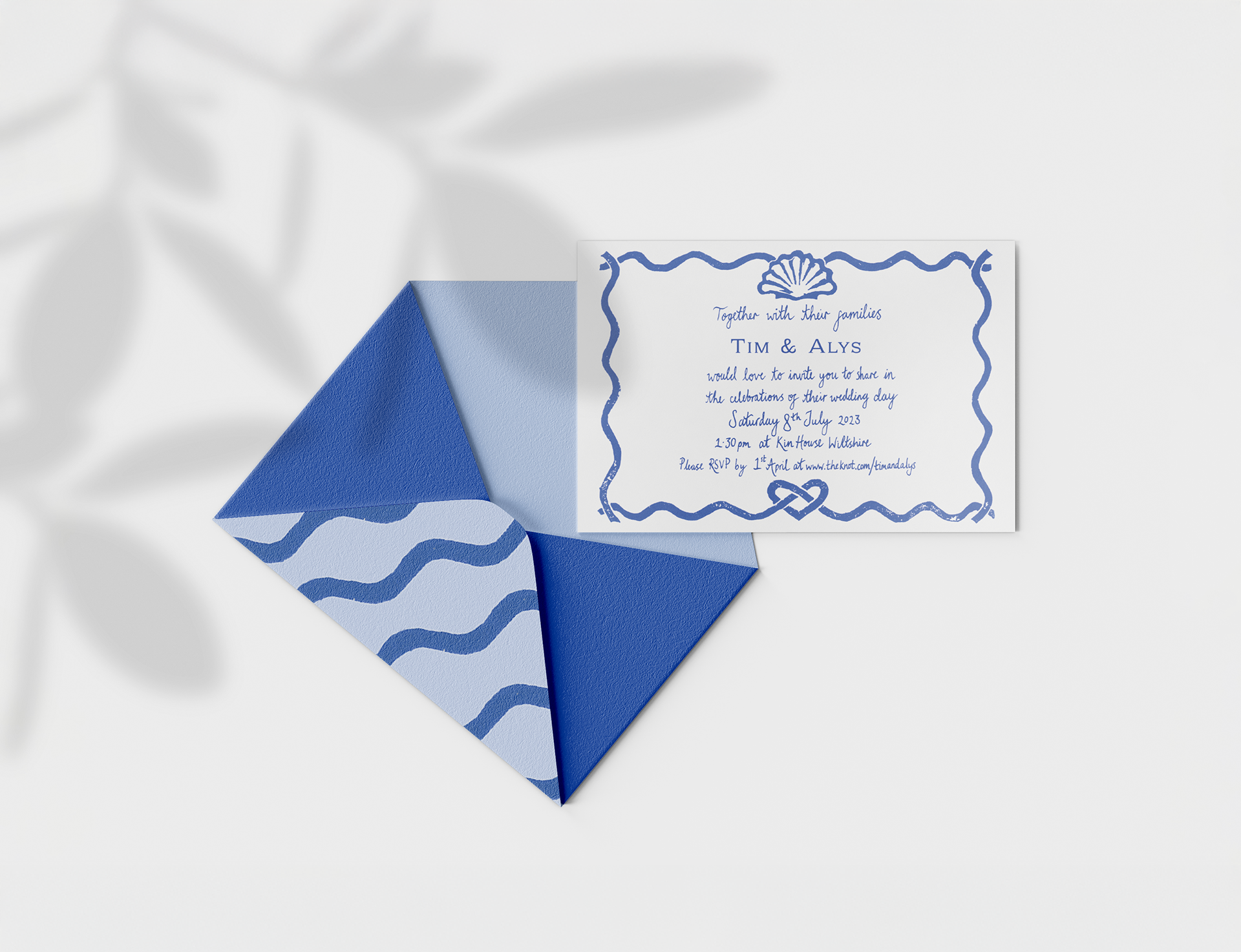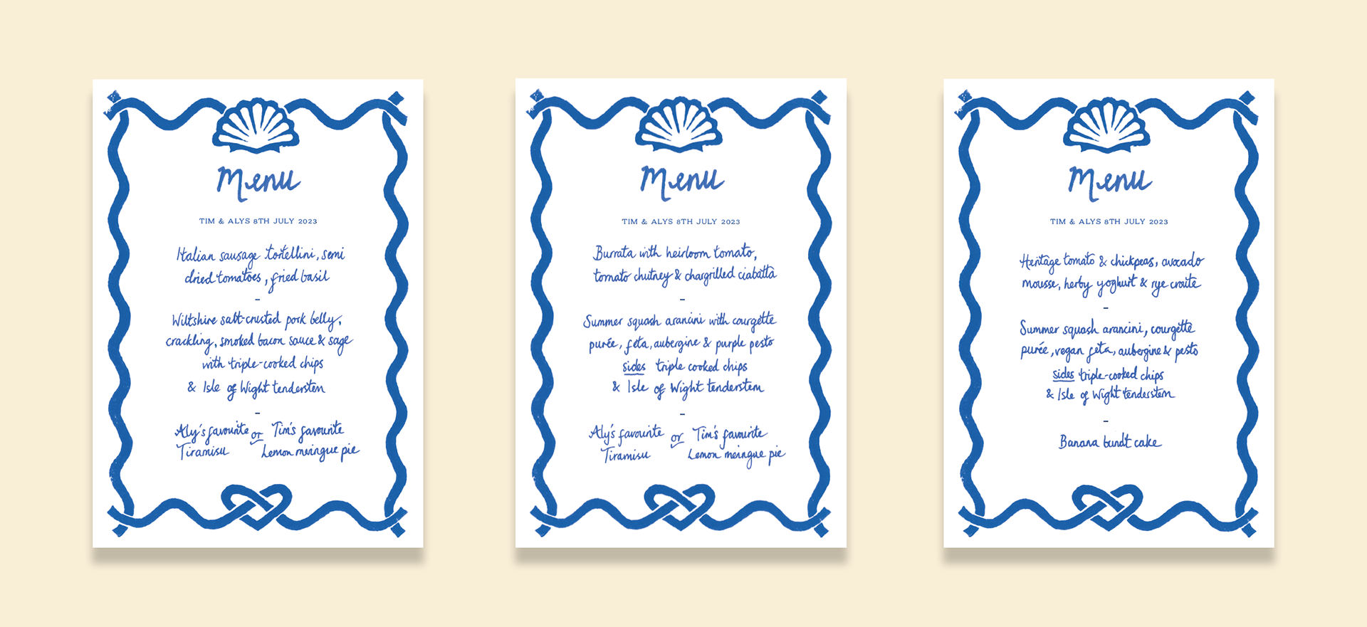 Working closely with Alys, a painter and calligrapher and screen printer Cathryn, to create the wedding stationery for Alys’ wedding.